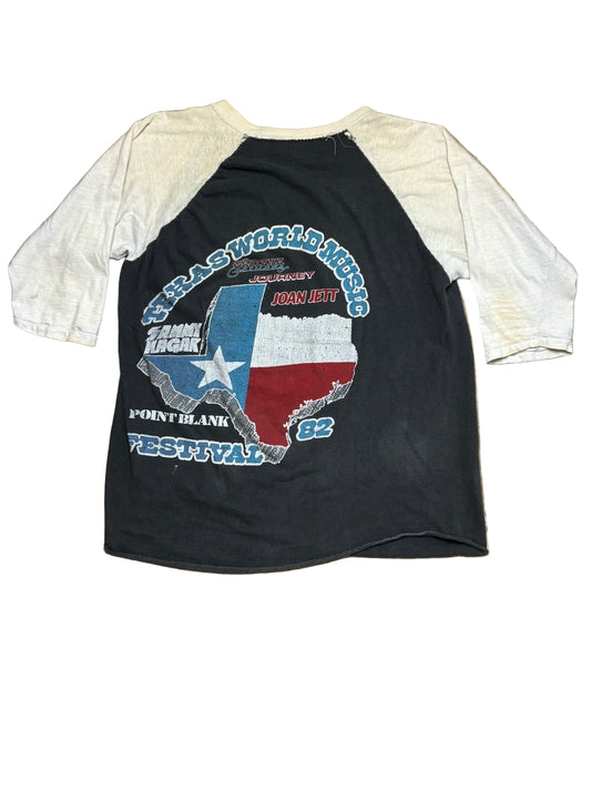 1982 Texas World Music Fest for Cotton Bowl/Astrodome Raglan T-Shirt Sammy Hagar, Joan Jett, Santana, Journey, & Point Blank - Small
