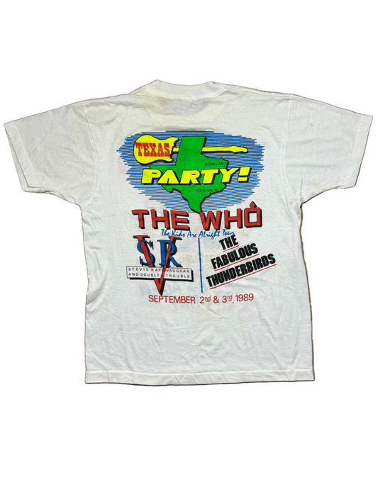 1989 Vintage White The Who, Stevie Ray, Texas Party T-Shirt - MED