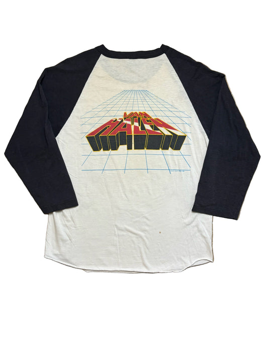 1982 Vintage White/Black Van Halen Live Raglan T-Shirt - MED