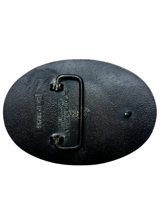 '81 Vintage Purnell Solid Brass & Leather Horse Belt Buckle
