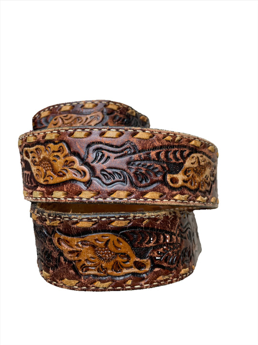 Vintage Tooled Leather "Larry" Belt (No Buckle) - Sz 28