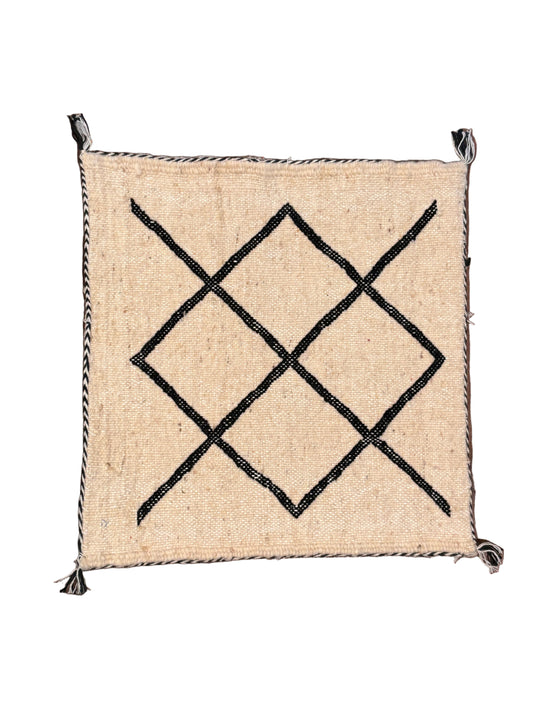 Moroccan Beige Wool Pillowcase w/Black Diamond Pattern 1.5' x 1.42'