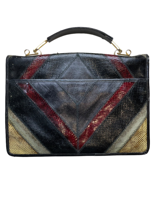 '80s Vintage Large Black Clutch w/Snakeskin Detail