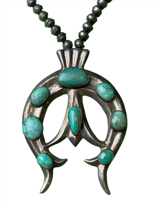 Vintage Sterling/Turquoise Naja Navajo Bench Bead Necklace