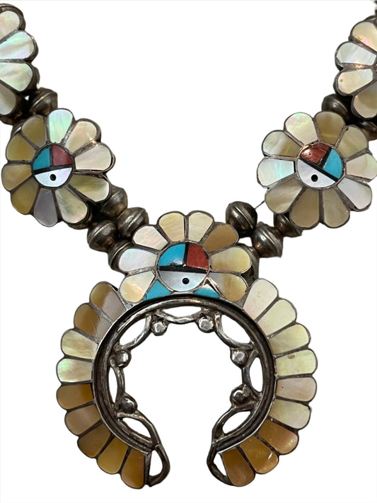 Vintage Zuni Ashberry Gasper MOP Inlay Sunface Naja Necklace