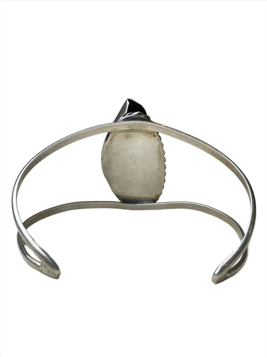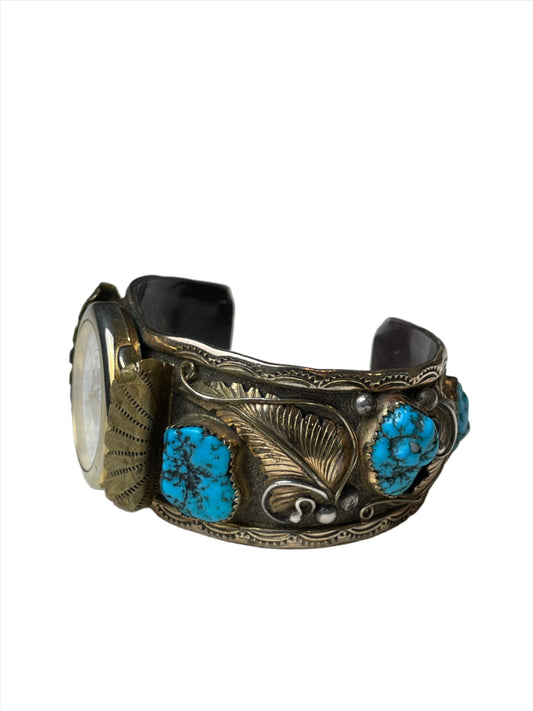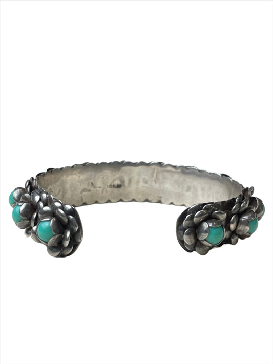 Vintage Sterling Silver Cuff w/Turquoise Flowers