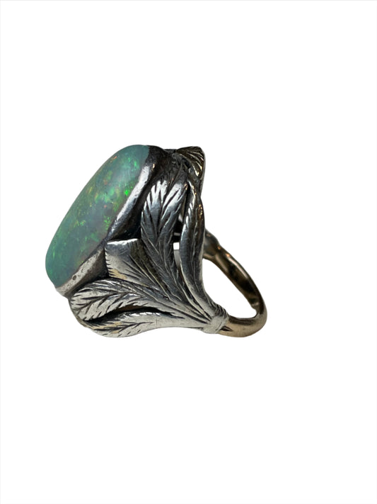 Vtg Opal 14K Gold & Sterling Ring Sz 4 3/4