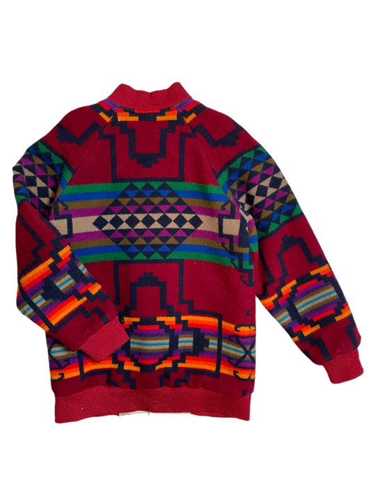 1980s Vintage Red Southwestern Banded Wool Jacket - 2XL