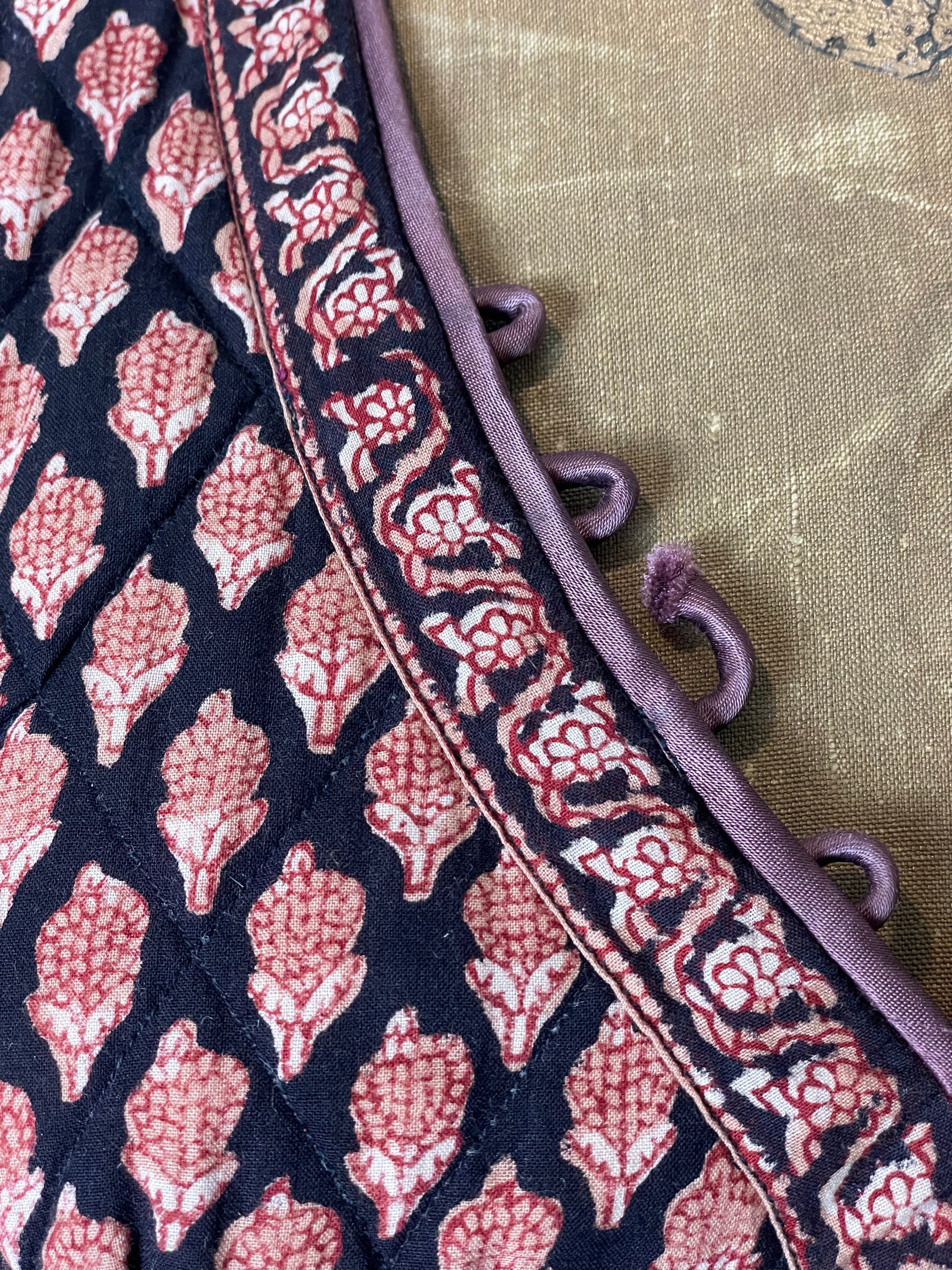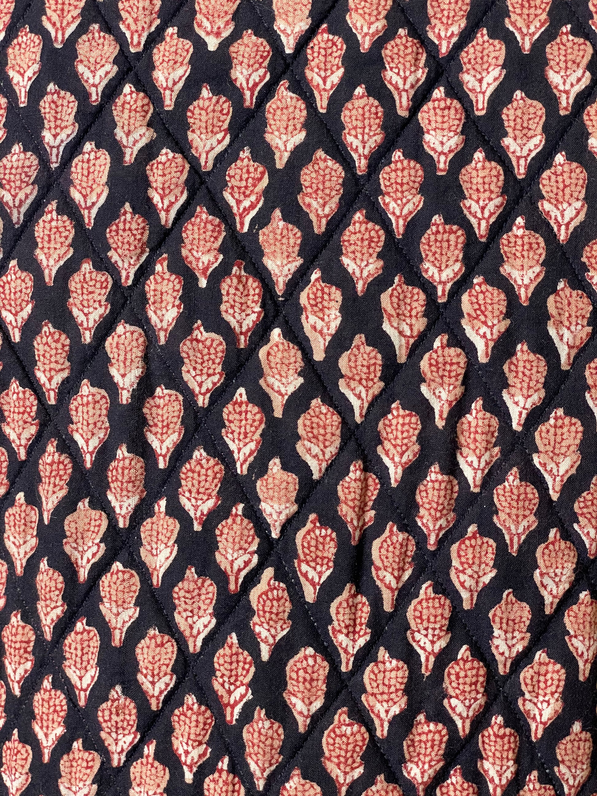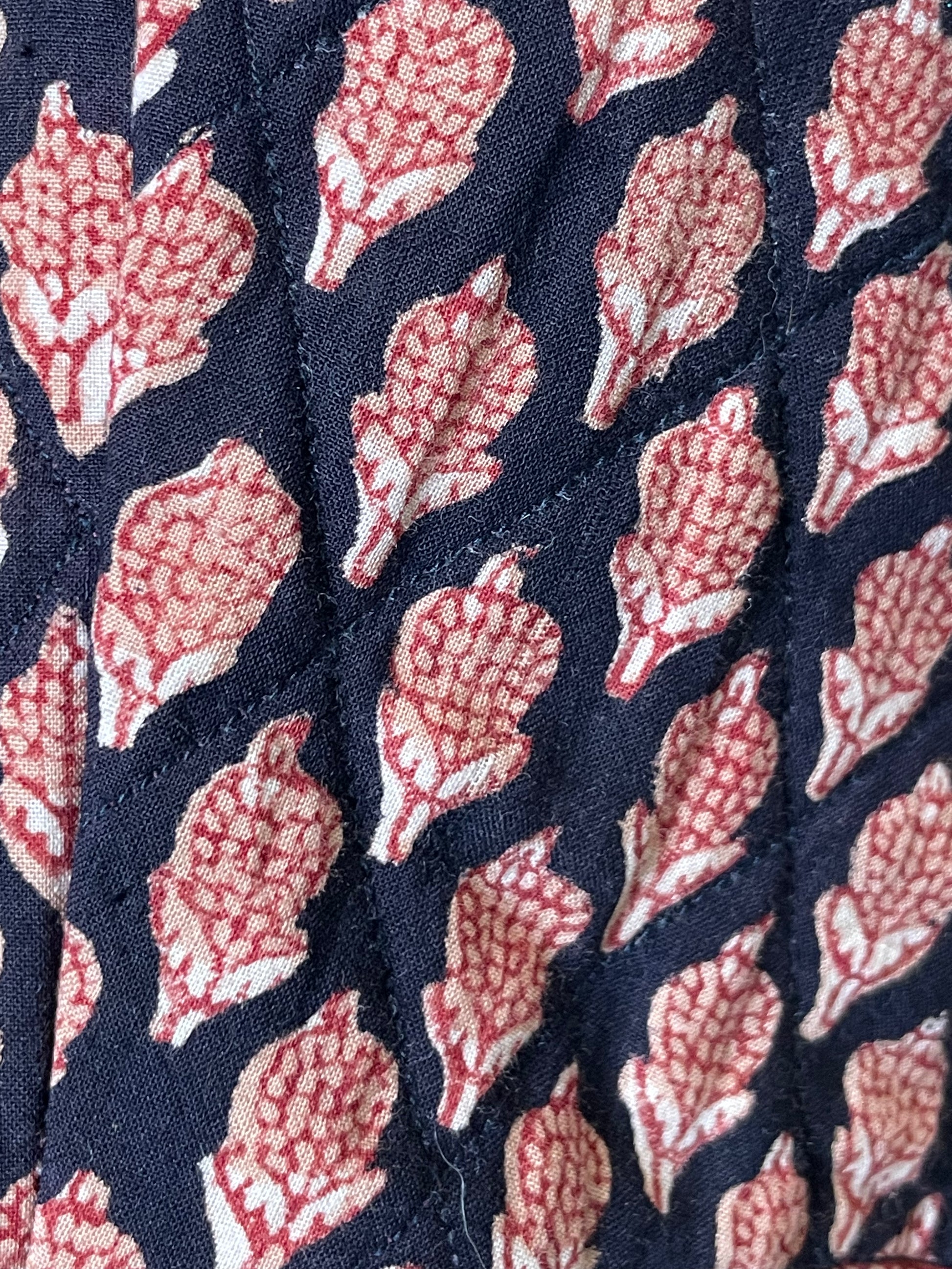 Vtg Anorai Indian Block Print Burgundy Midi Dress - XS