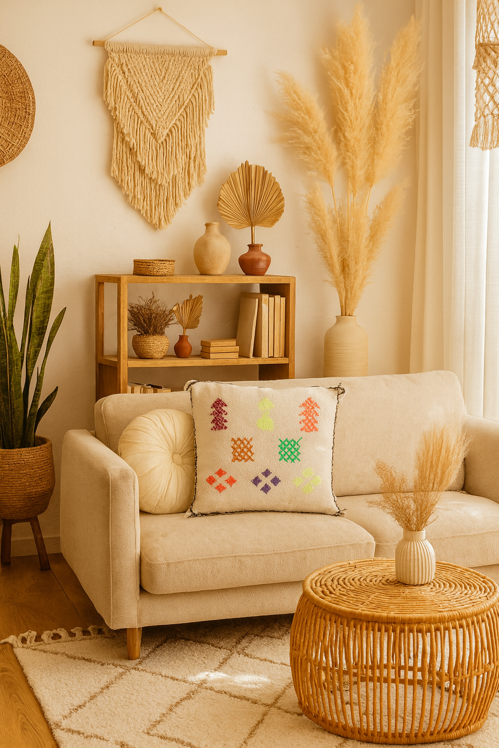 Moroccan Beige Wool Pillowcase w/Neon Colored Accents 1.71' x 1.75'