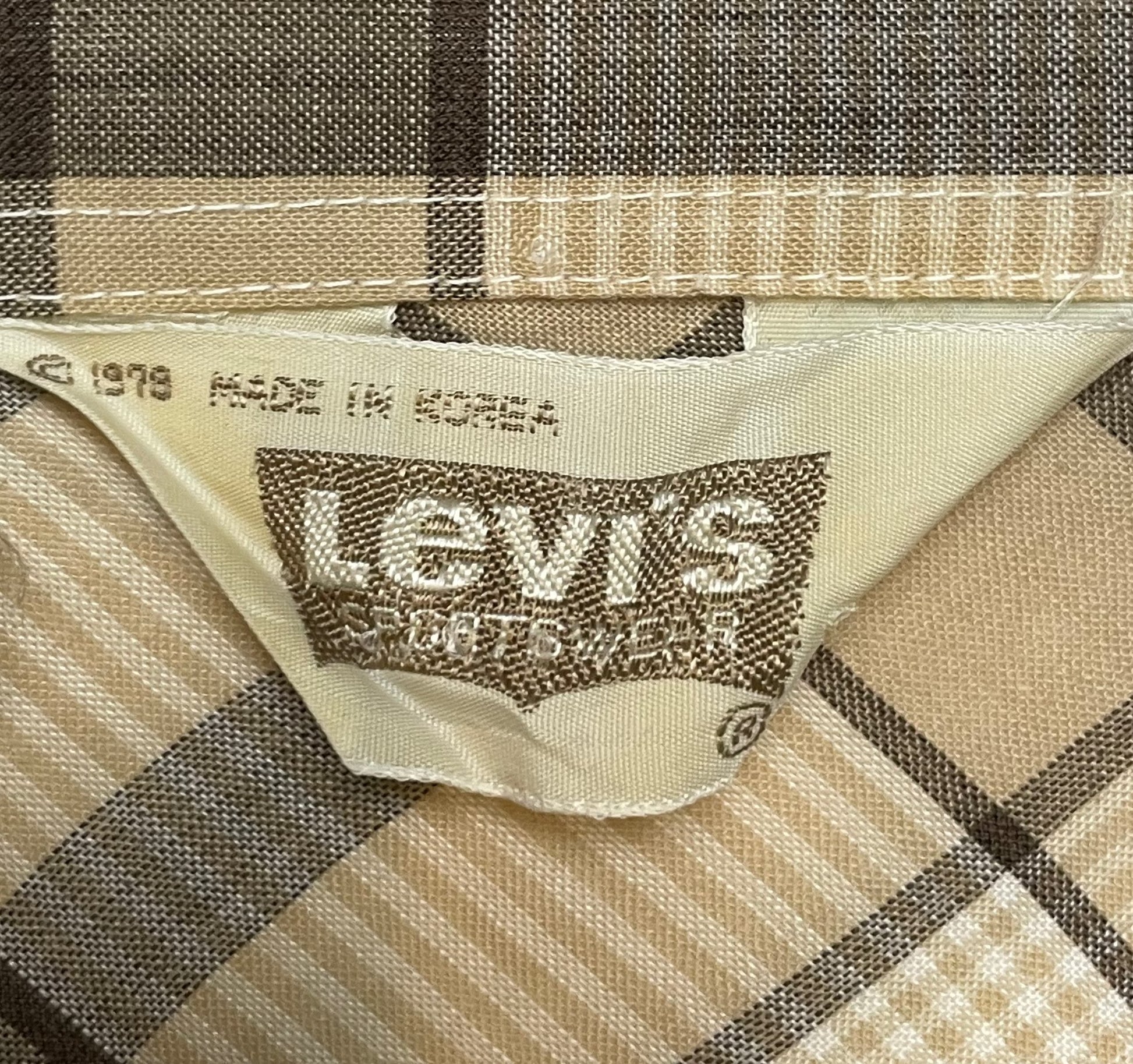 '70s Vintage Levi's Brown Plaid Thin Pearl Snap - Sml