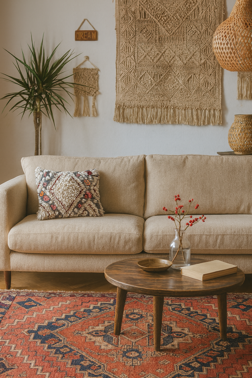Moroccan 1x2' Beige Wool Pillowcase w/Colored Accents