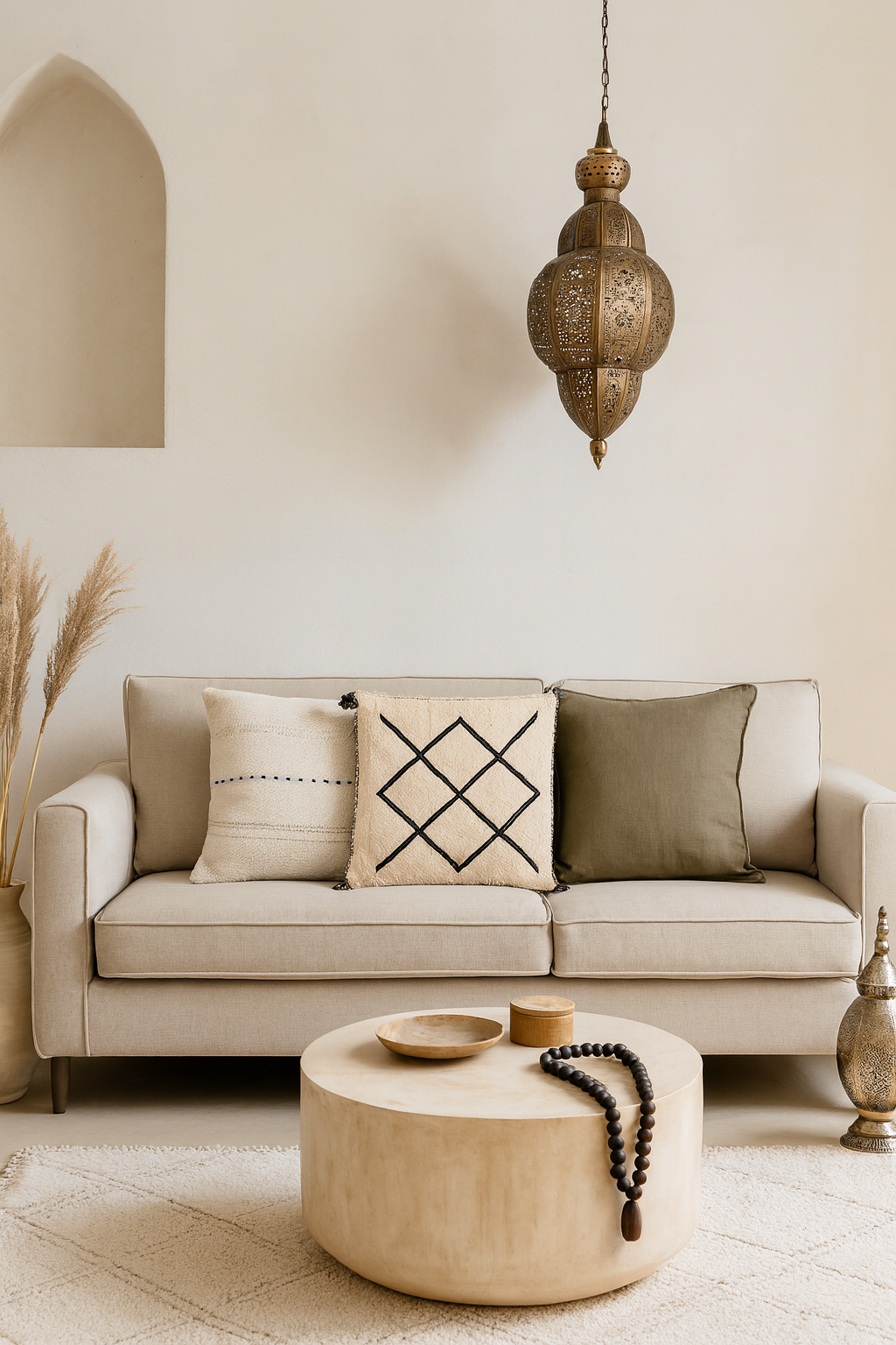 Moroccan Beige Wool Pillowcase w/Black Diamond Pattern 1.5' x 1.42'
