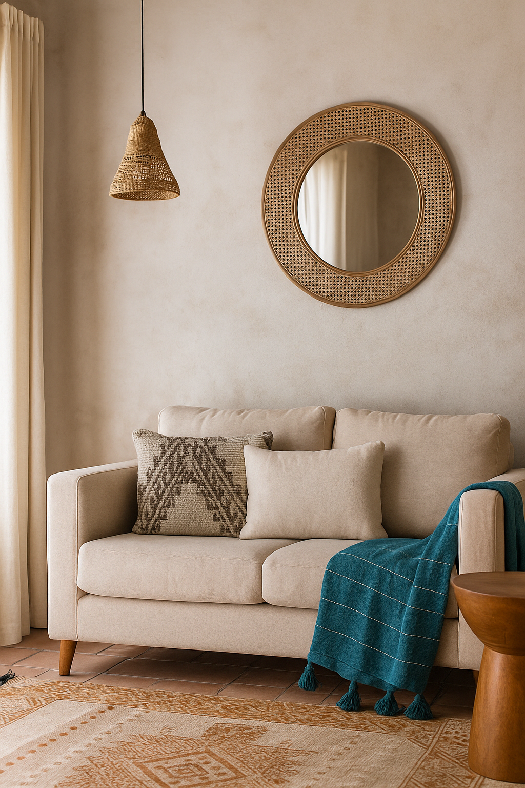 Moroccan Beige Wool Tapestry Pillowcase 1.5' x 1.5'