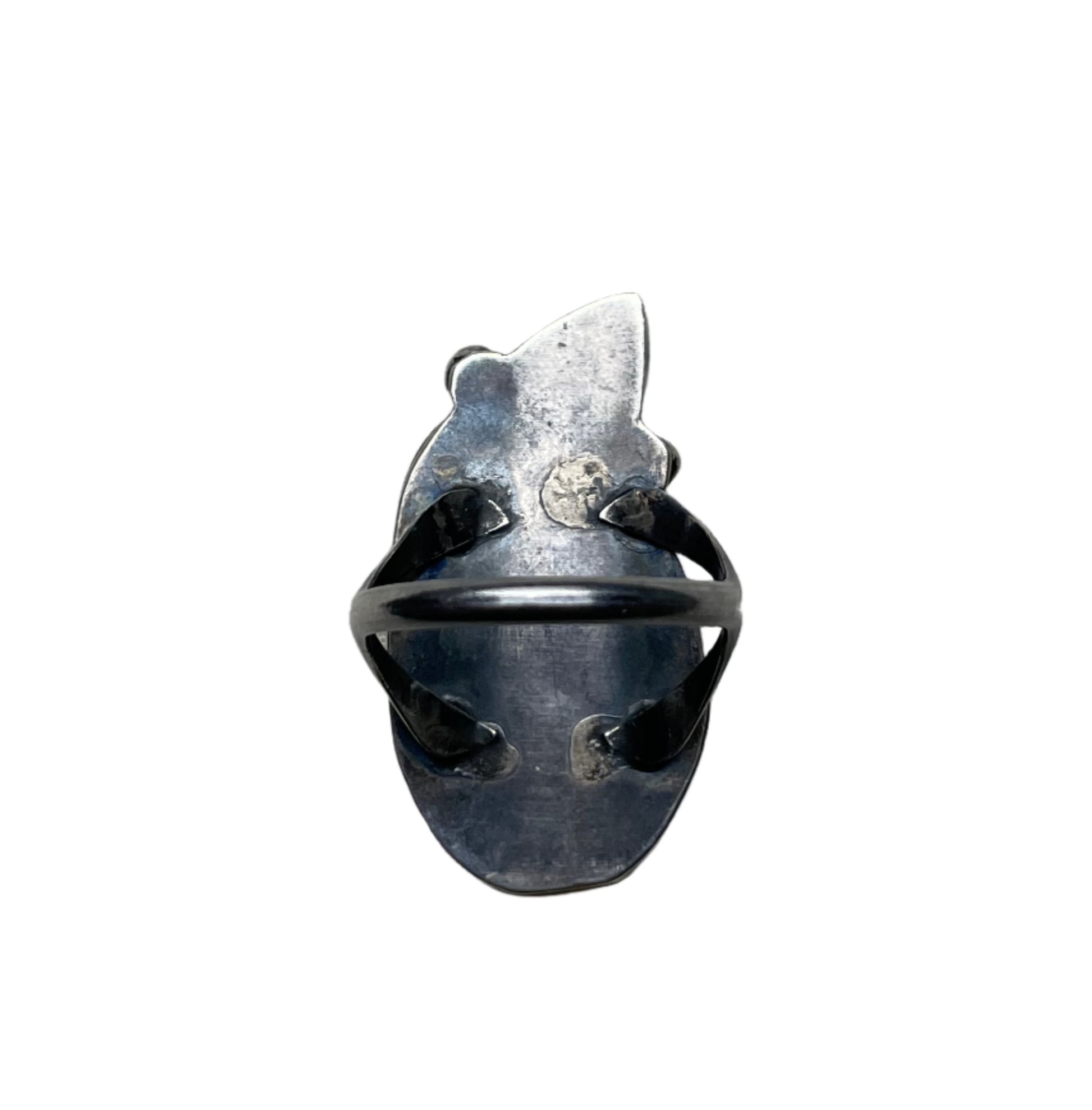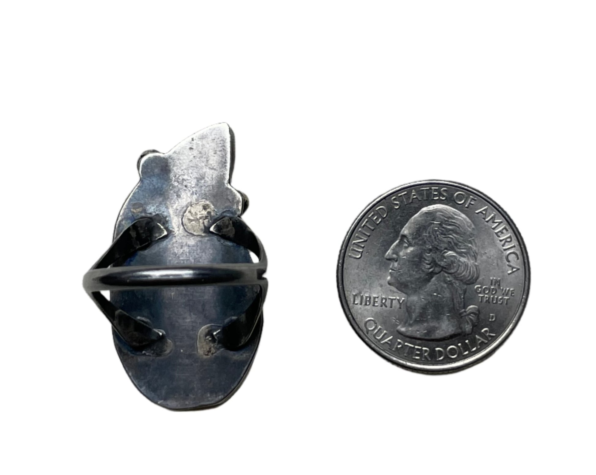 Vtg Turquoise Shadow Box Ring Sterling Seashell Sz 8