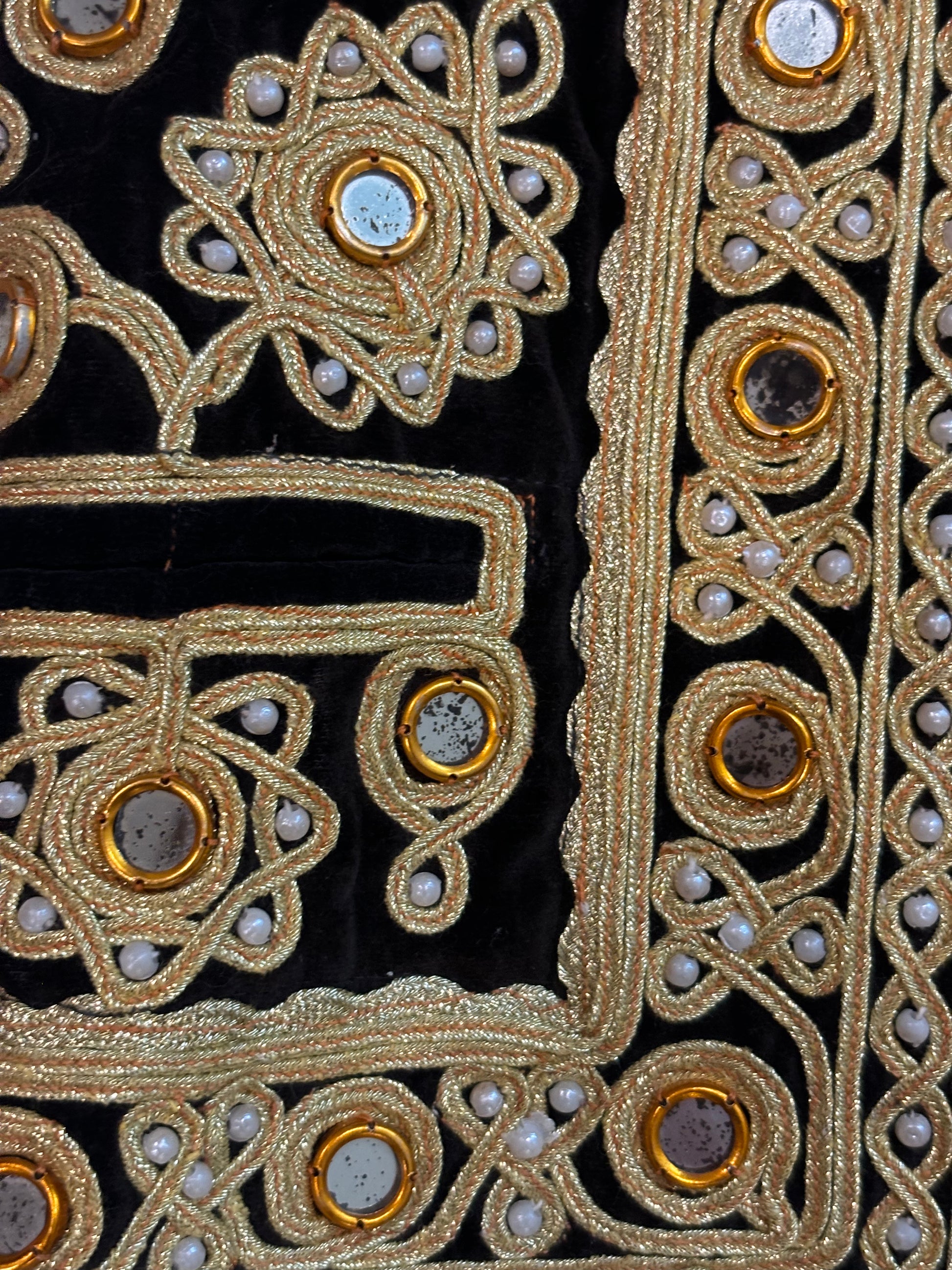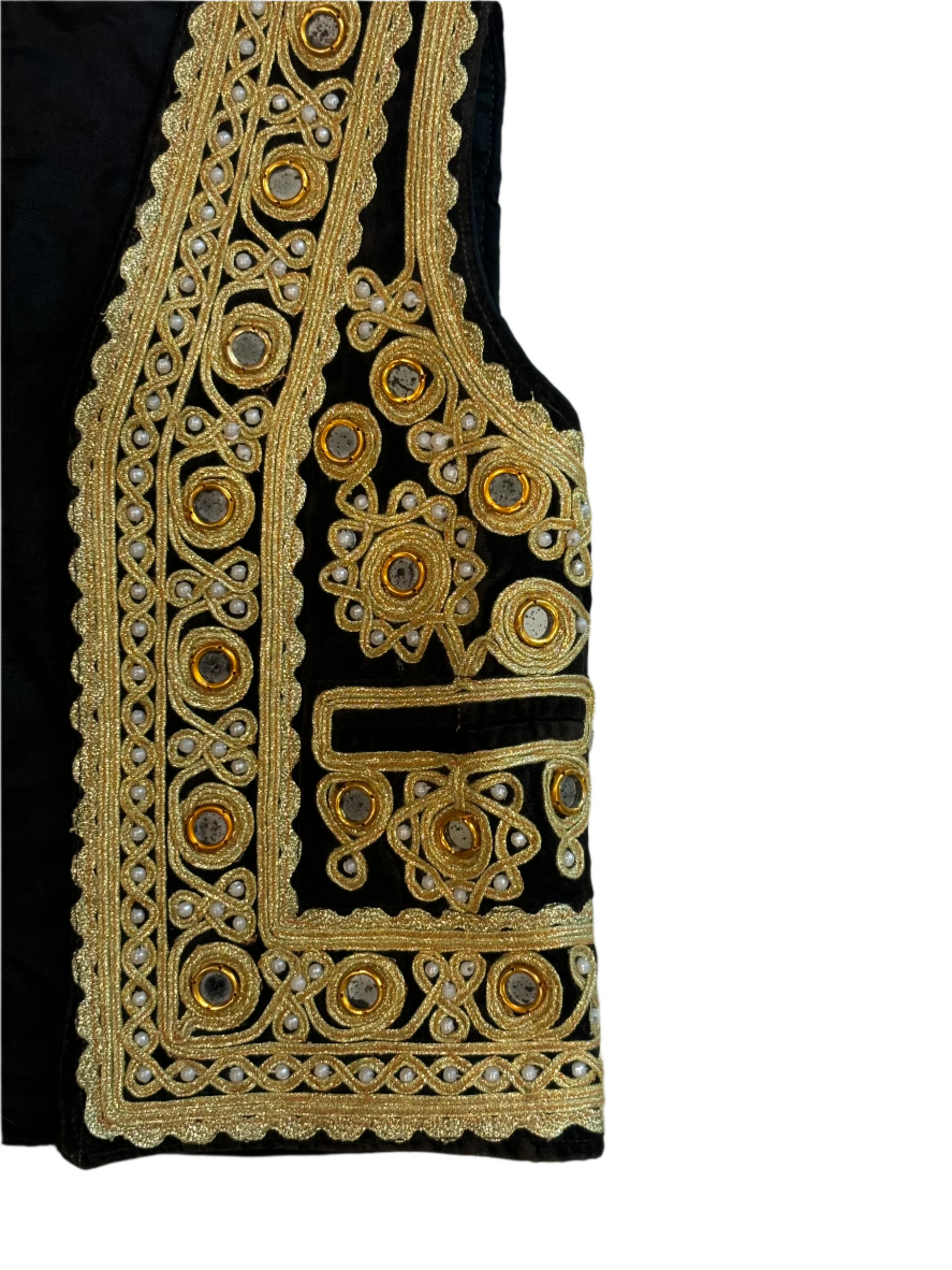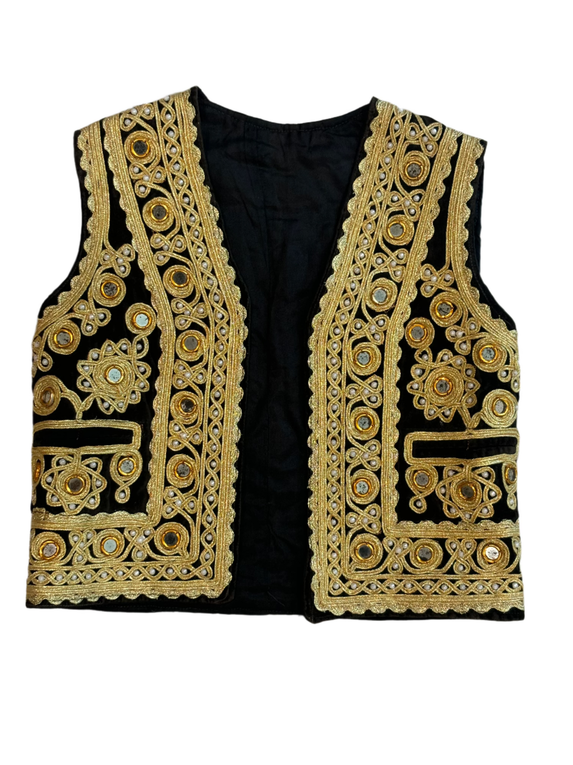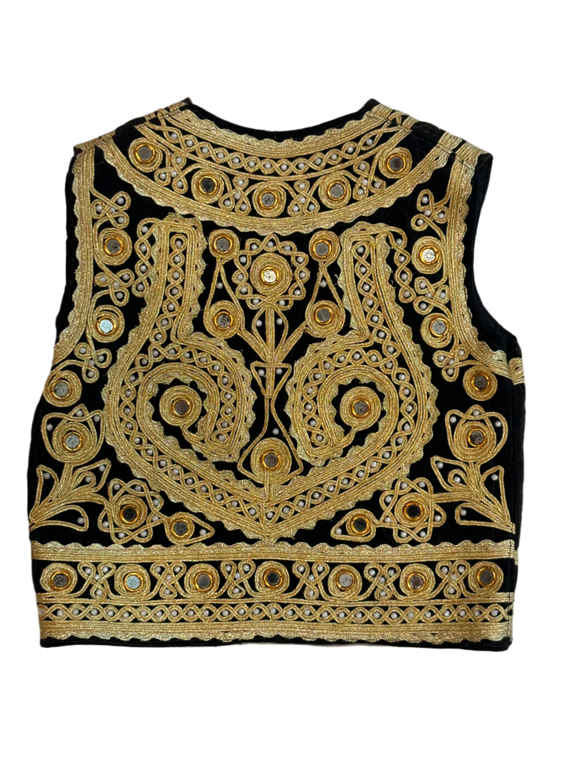 Vintage Child's Blk/Gold Mirrored Afghan Vest 5-6Y