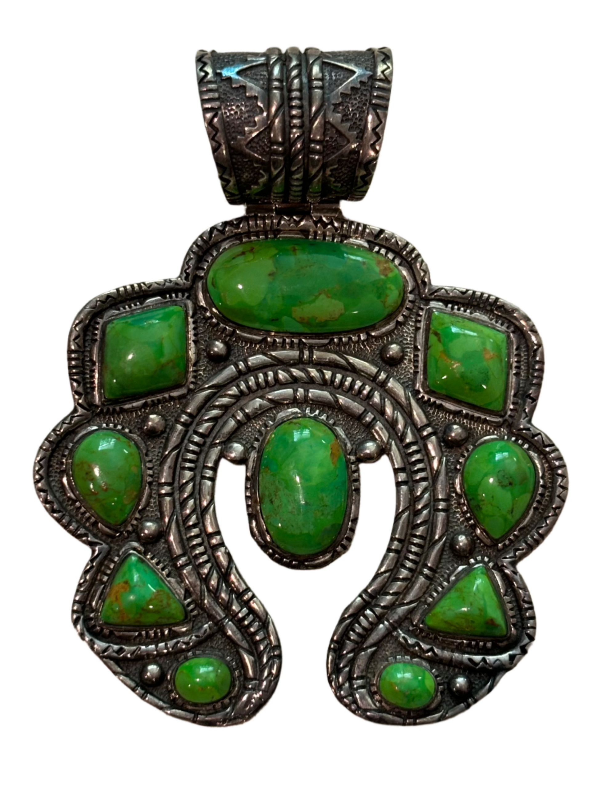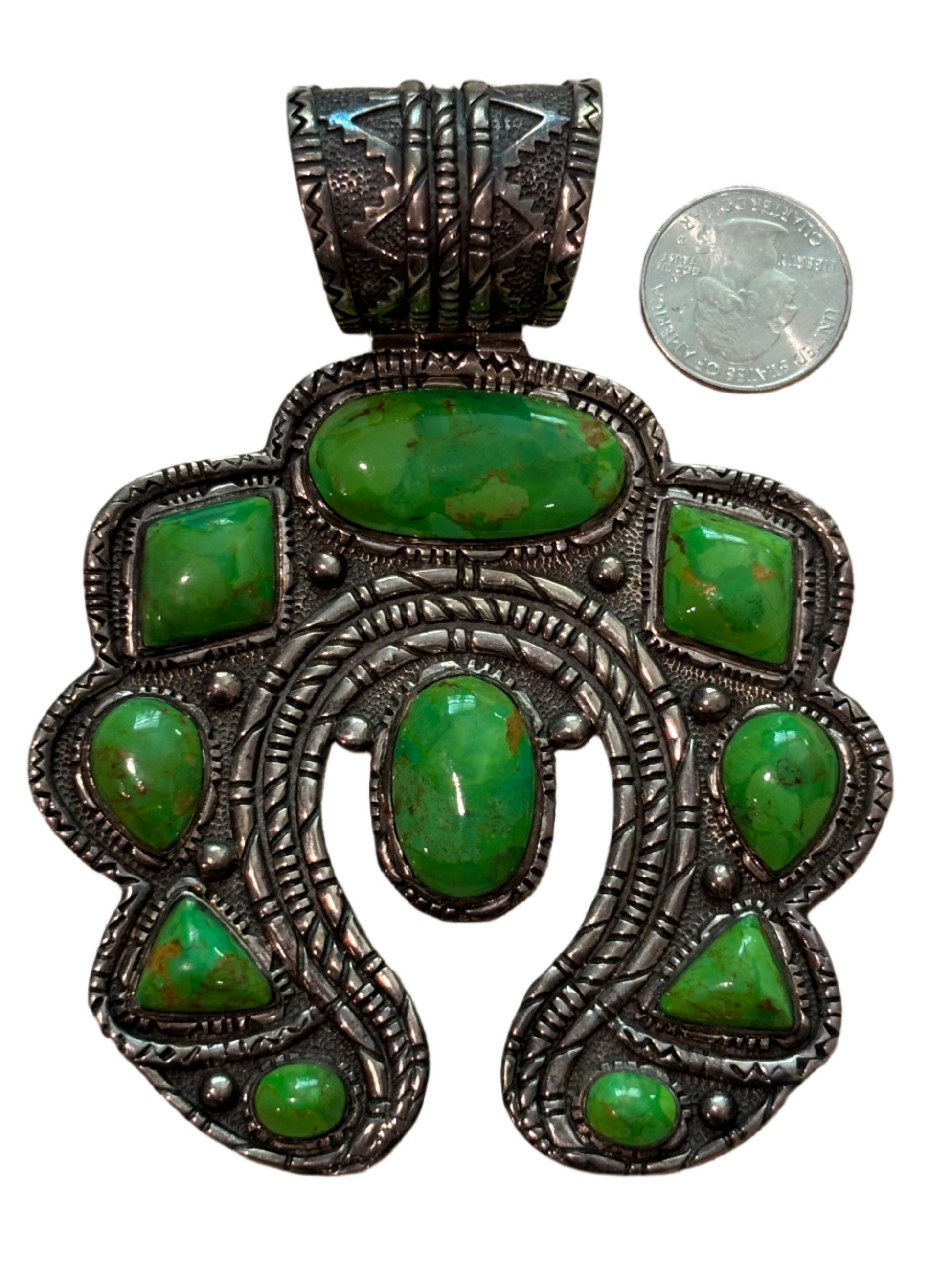 Vintage Giant Naja Green Sonoran Gold Squash Blossom Pendant by CN