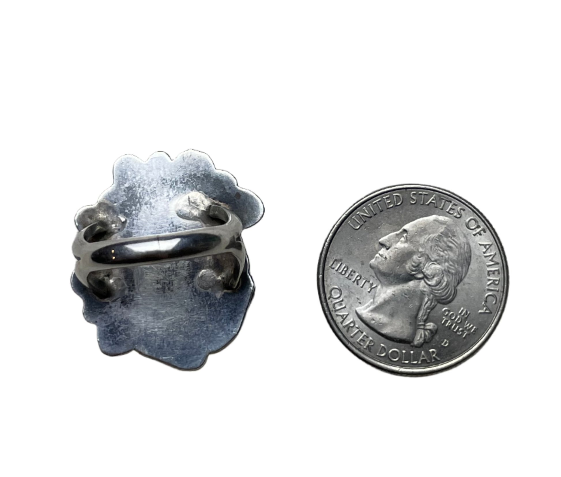 Vtg Persian Turquoise w Feather Bezel Ring Sz 6